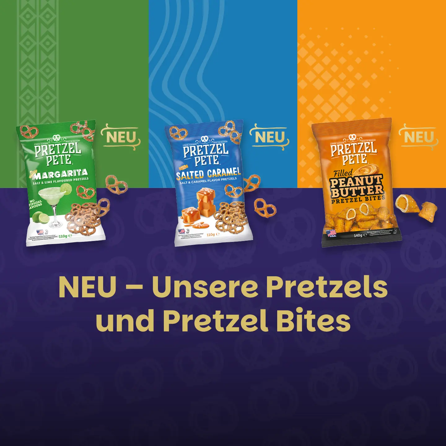 Mit trendigen Aktionen und saisonalen Highlights: Pretzel Pete sorgt für innovative Ideen, überraschende Sorten und macht Lust auf mehr. Damit’s im Snackregal nie langweilig wird.